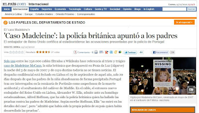 In one of two cables referring to the McCann case, the US ambassador notes: "Madeleine McCann's disappearance in the south of Portugal in May 2007 has generated international media attention with controversy surrounding the Portuguese-led police investigation and the actions of Madeleine's parents."