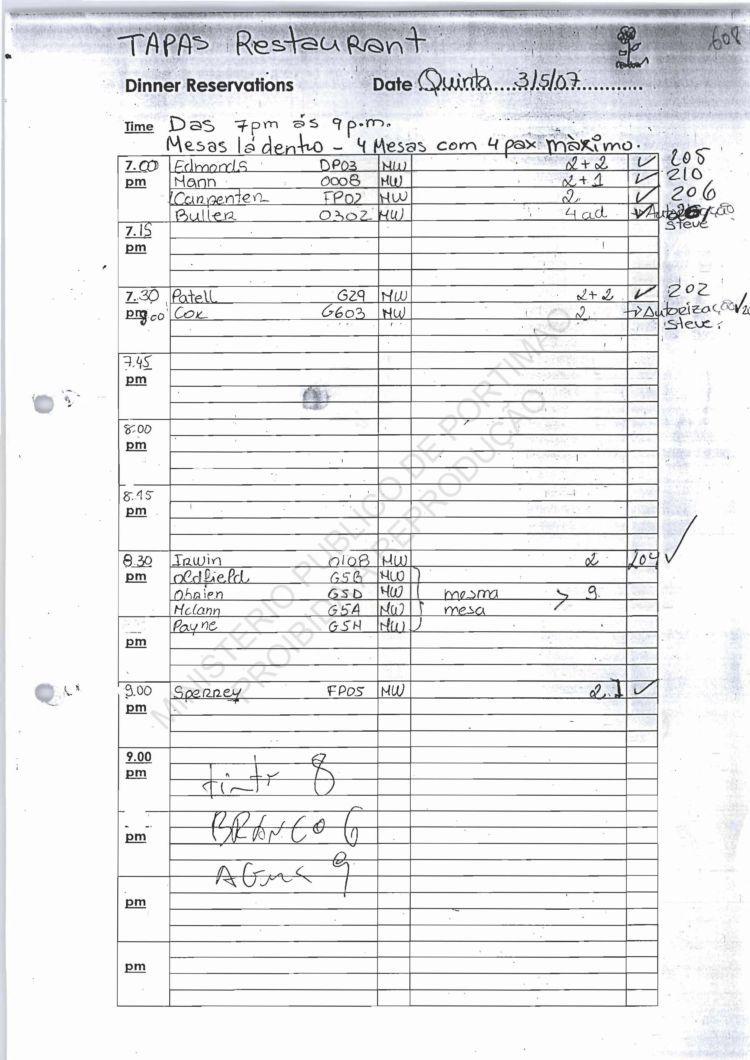 When the customer arrives on the night in question, what the restaurant does is to cross out the name, or check it. It simply means that that particular customer that has made that reservation has arrived, and allows for Party B to check out those who he hasn’t checked, eventually call them, and confirm if they’re coming or not.