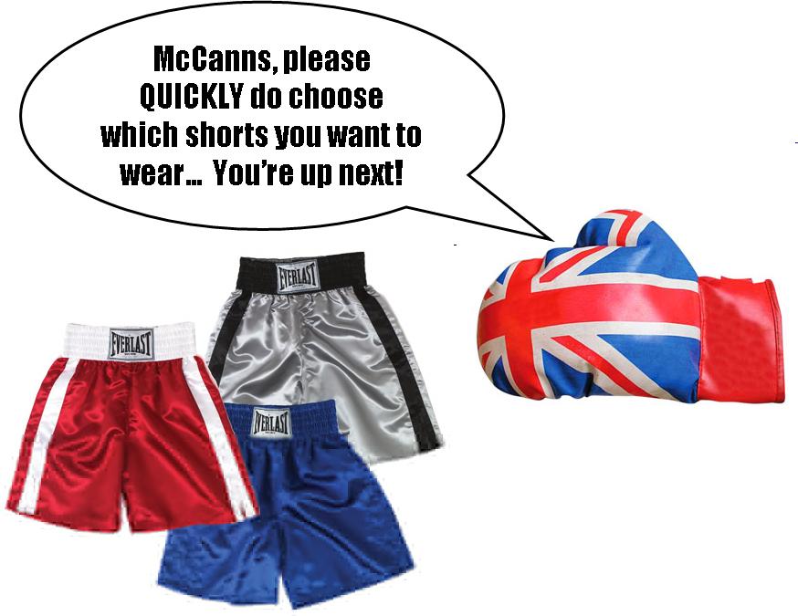 Also, I’m not seeing ANY of the tabloids of running another McCann story EVER again. Too risky. With the exception of their arrest, that is. And about that, can I make a suggestion for The Sun headline that day? How about “McScams”? Do use it please, no copyrights demanded.