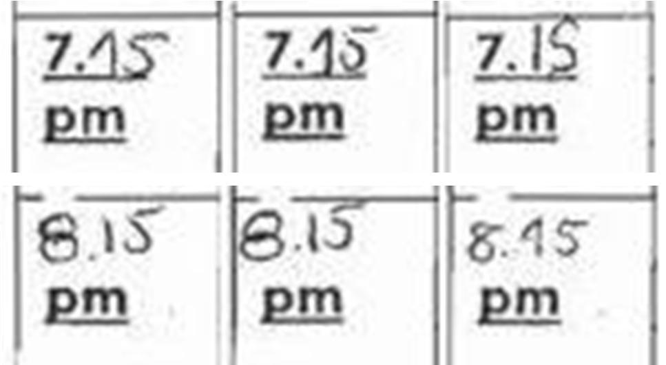 Monday, May 7th: 19:00, 19:15, 19:45 followed by