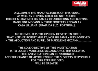 In this third episode, the message again insists on Maddie being dead, involves the parents and involves directly the Murats, regardless of the silly disclaimer below as it’s silly to think that somebody places a body beneath a cement coverage without the knowledge of the owners of the property: