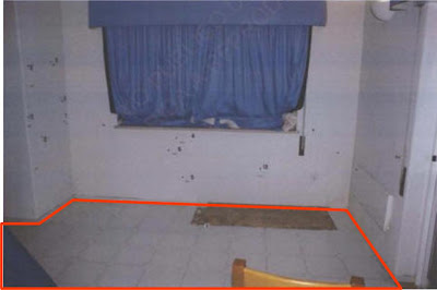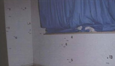 The wall and floor stains 9a&b are also attributed to him, which would contradict the blood splatters being fromPaul “Labrador” Gordon in the living room who is said to have walked around the apartment trying to staunch bleeding after cutting himself shaving.