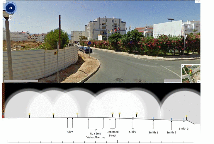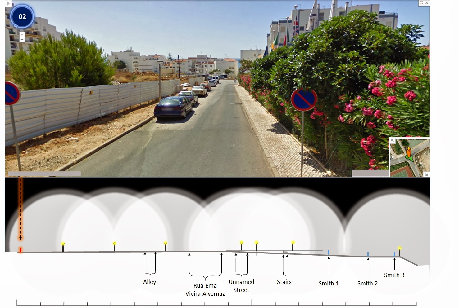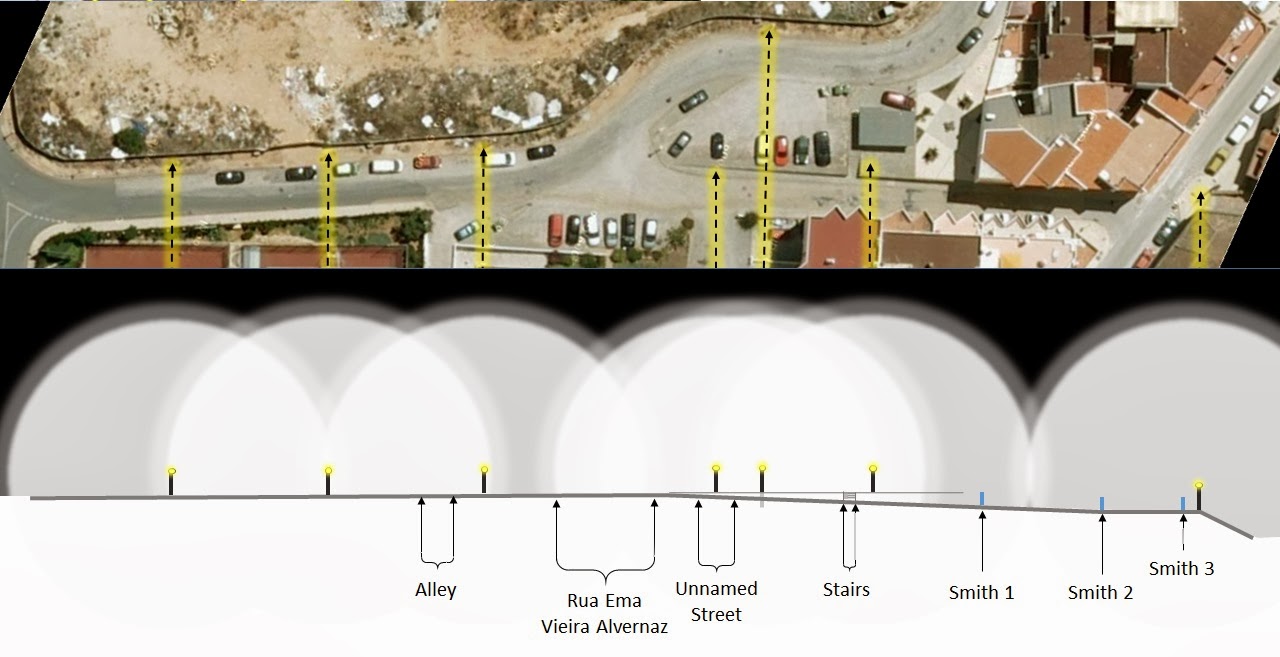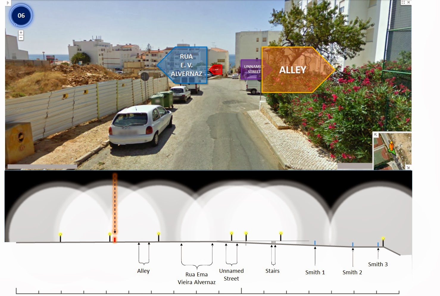 We have signalled, from left to right, an alley, Rua Ema Vieira Alvernaz, an unnamed street, stairs and the 3 locations of Smith's 3 groups, Smith 1, Smith 2 and Smith 3: