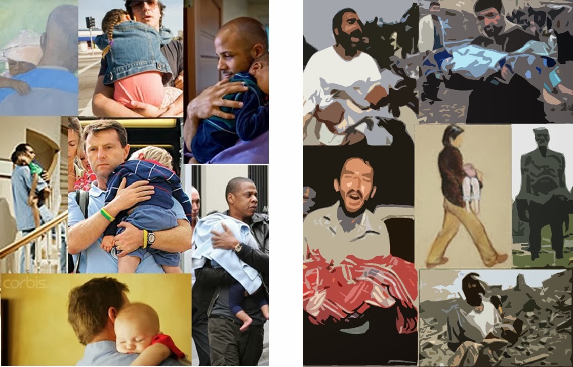 Why? To show he's holding a "sleeping" child but avoid revealing details about himself.